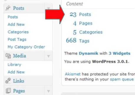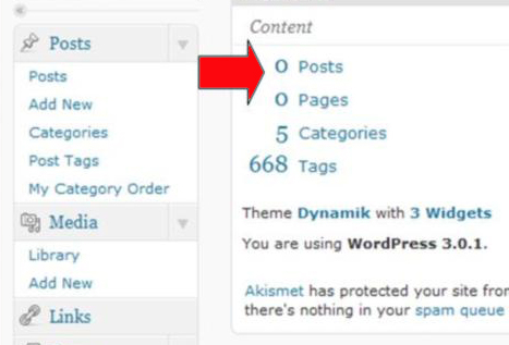 2. Login ke halaman admin anda (misal: www.domainanda.com/wp-admin), terlihat jumlah postingan/post yaitu “0”..