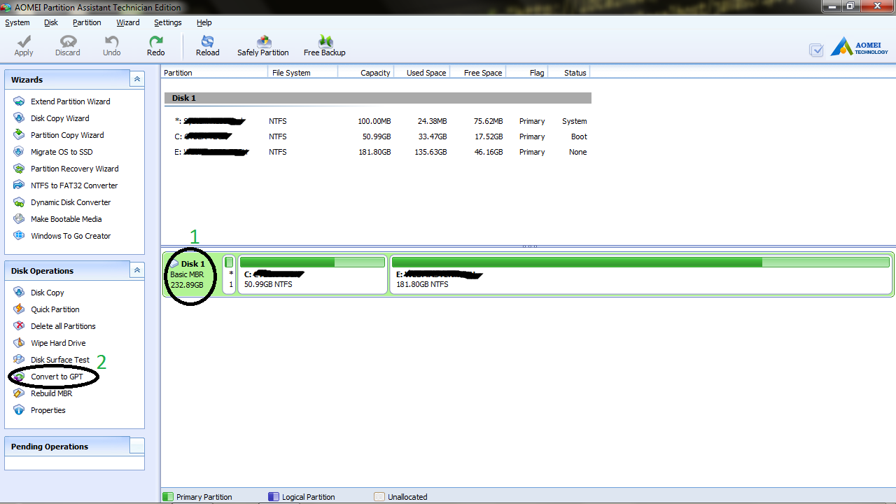 Cara Merubah Hardisk GPT Ke MBR Atau Sebaliknya memang banyak caranya. Namun cara berikut ini dapat dilakukan dengan mudah dan data tetap aman. Cara Merubah Hardisk GPT Ke MBR atau Cara Merubah Hardisk MBR Ke GPT berikut dikatakan cukup mudah karena hanya tinggal beberapa klik langsung selesai. Tanpa harus melalui CMD dengan sederet perintah yang mungkin sulit diketik ataupun diingat, tentunya bagi yang tidak terbiasa dengan CMD. Tutorial Merubah Hardisk GPT Ke MBR atau Sebaliknya berikut ini sangat cocok bagi yang suka serba cepat, mudah, dan data tetap aman. Namun tentunya jangan sampai salah klik. Yang kami share disini menggunakan salah satu software yang cukup familiar dikalangan teknisi dan dengan fitur yang sangat lengkap diabandingkan dengan software lainnya. Yaitu menggunakan : AOMEI Partition Assistant Technician Edition. Dan team kami pun sering menggunakan ini jika berurusan dengan dua tipe hardisk yaitu GPT ataupun MBR. Sebelumnya juga telah kami bahas mengenai salah satu fungsi software lain yang fungsinya hampir sama dengan AOMEI Partition ini di >> Tutorial Cara Partisi Memory Card Mudah Tanpa Ribet.