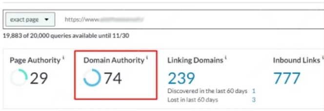 Dikutip dari MOZ, Otoritas Domain adalah skor yang menunjukkan seberapa baik peringkat website yang dinilai melalui alamat domain yang digunakan. Nilai skor Domain Authority yaitu berkisar dari 1 sampai 100. Skor yang lebih tinggi dianggap memiliki potensi untuk mendapatkan peringkat yang lebih baik.