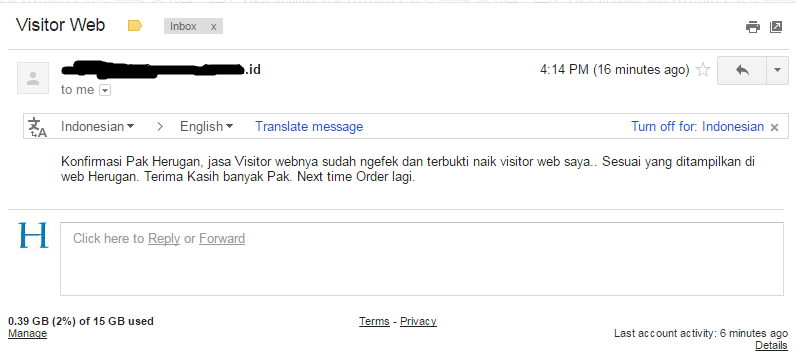 Untuk kepercayaan, kami berikan bukti screen shot ASLI dan beberapa TESTIMONI Client kami yang telah menggunakan Layanan Jasa Visitor Web dari kami dengan metode Digital Advertising Terbaik, berikut selengkapnya :