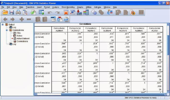 Sebelum dimulai penjelasan cara olah data spss berikut ini, ada baiknya saya jelaskan mengenai data yang akan digunakan. Pada Tutorial SPSS berikut ini, data yang akan diolah berjenis data primer melalui kuesioner dengan skala likert 1 sampai 5 (sangat tidak setuju sampai sangat setuju). Dalam data kali ini saya menggunakan data primer kuesioner Audit yang terdiri dari 4 variabel yaitu kompentensi auditor (X1), independensi Auditor (X2), integritas Auditor (X3) dan variabel kualitas Audit (Y). Langsung saja berikut Tutorial SPSS dilengkapi dengan langkah-langkah cara olah data kuesioner dengan SPSS :